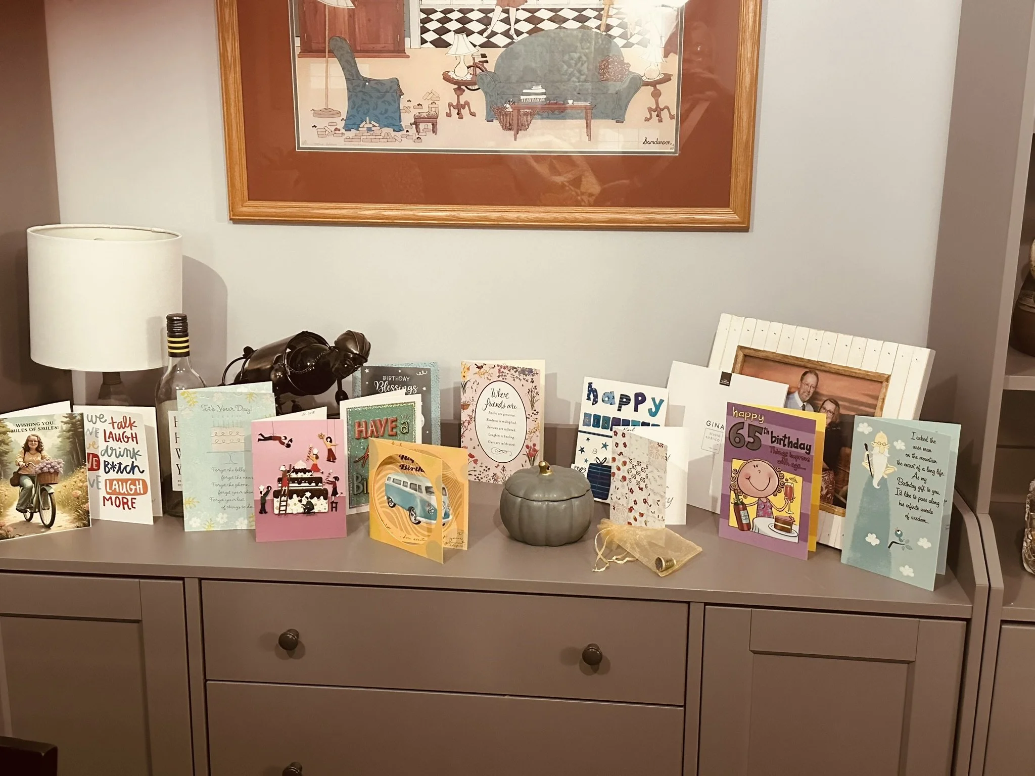Next up—I took down the sympathy cards from my moms passing the month before and replaced them with Birthday cards and gifts from friends and family. We had a Euchre card party on Saturday afternoon that was attended by my kids, grandkids and friends. There were snacks, cake and lots of laughter.